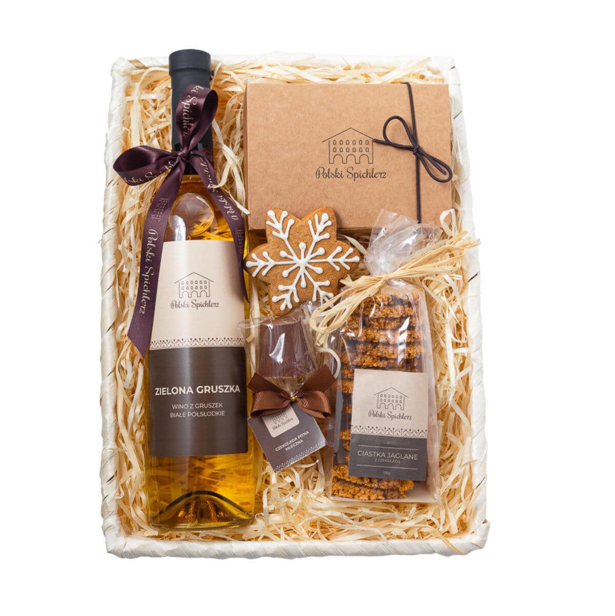 • Butelka polskiego białego wina półsłodkiego z zielonej gruszki 0,75l