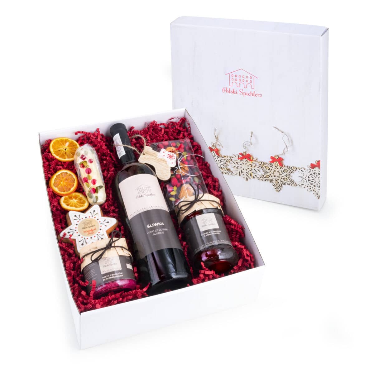 Całość w ręcznie kaszerowanym pudełku z wypełnieniem i dekoracją