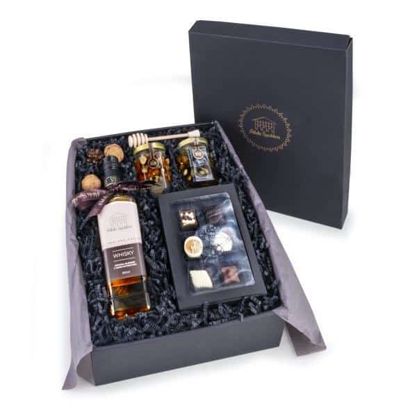 Całość w eleganckim czarnym pudełku ze złoceniem logo Polski Spichlerz.