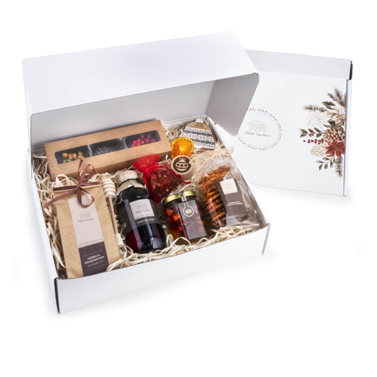 Całość w ręcznie kaszerowanym pudełku z wypełnieniem i dekoracją.