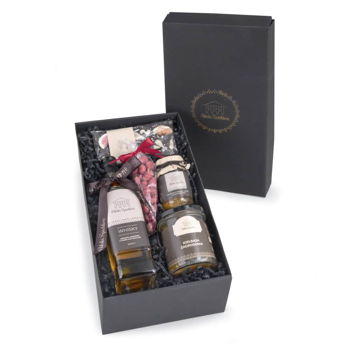 Całość w eleganckim czarnym pudełku ze złoceniem logo Polski Spichlerz