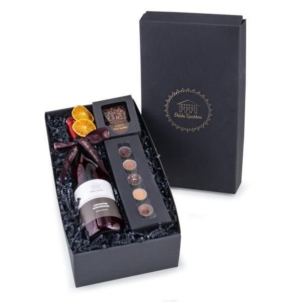 Całość w eleganckim czarnym pudełku ze złoceniem logo Polski Spichlerz.