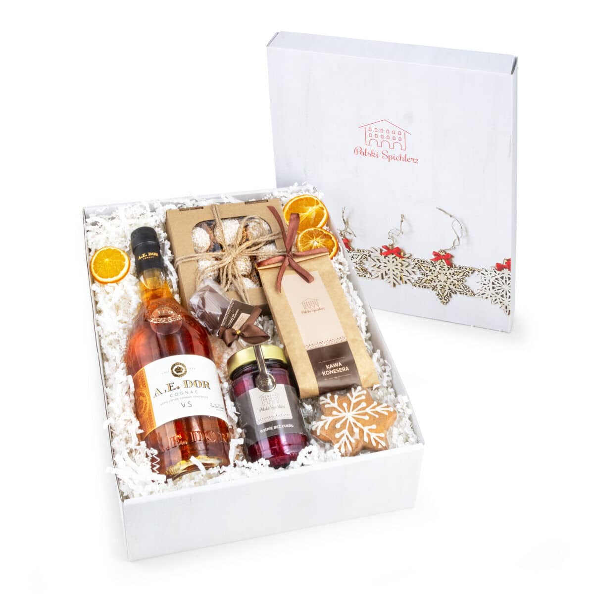 Całość w ręcznie kaszerowanym pudełku z wypełnieniem i dekoracją