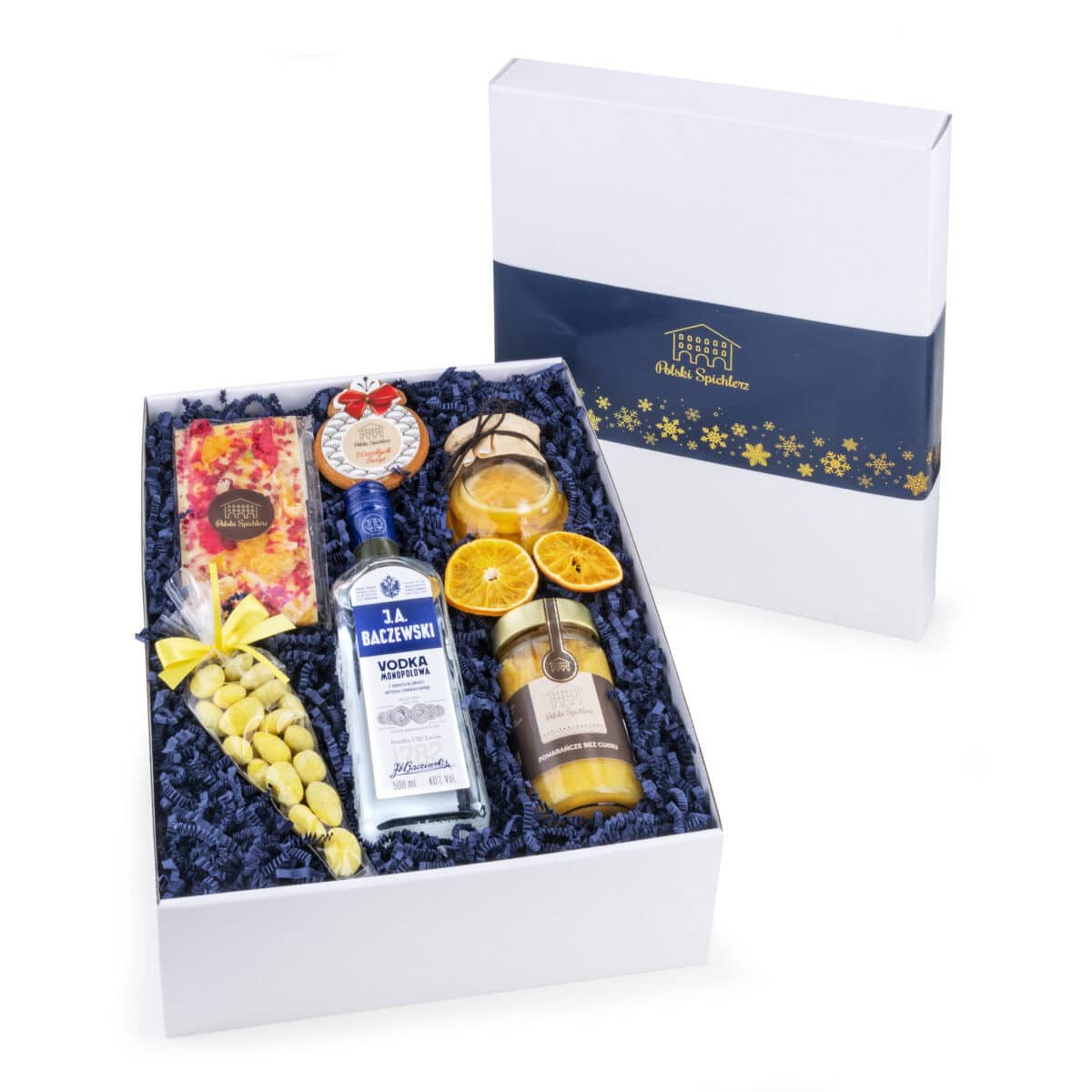 Całość w ręcznie kaszerowanym pudełku z wypełnieniem i banderolą z logo Polski Spichlerz.