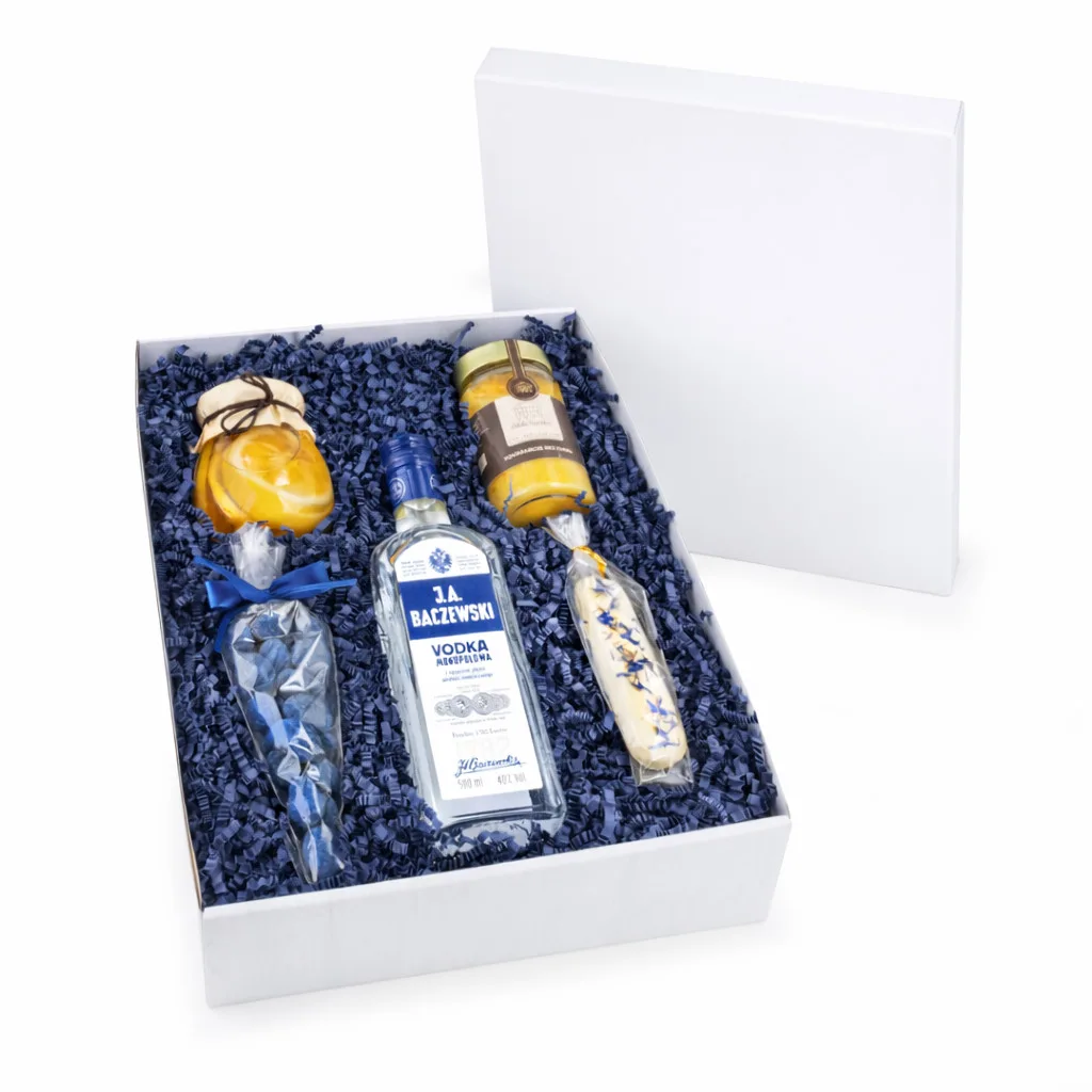 Całość w ręcznie kaszerowanym pudełku z wypełnieniem i wstążką z logo Polski Spichlerz.