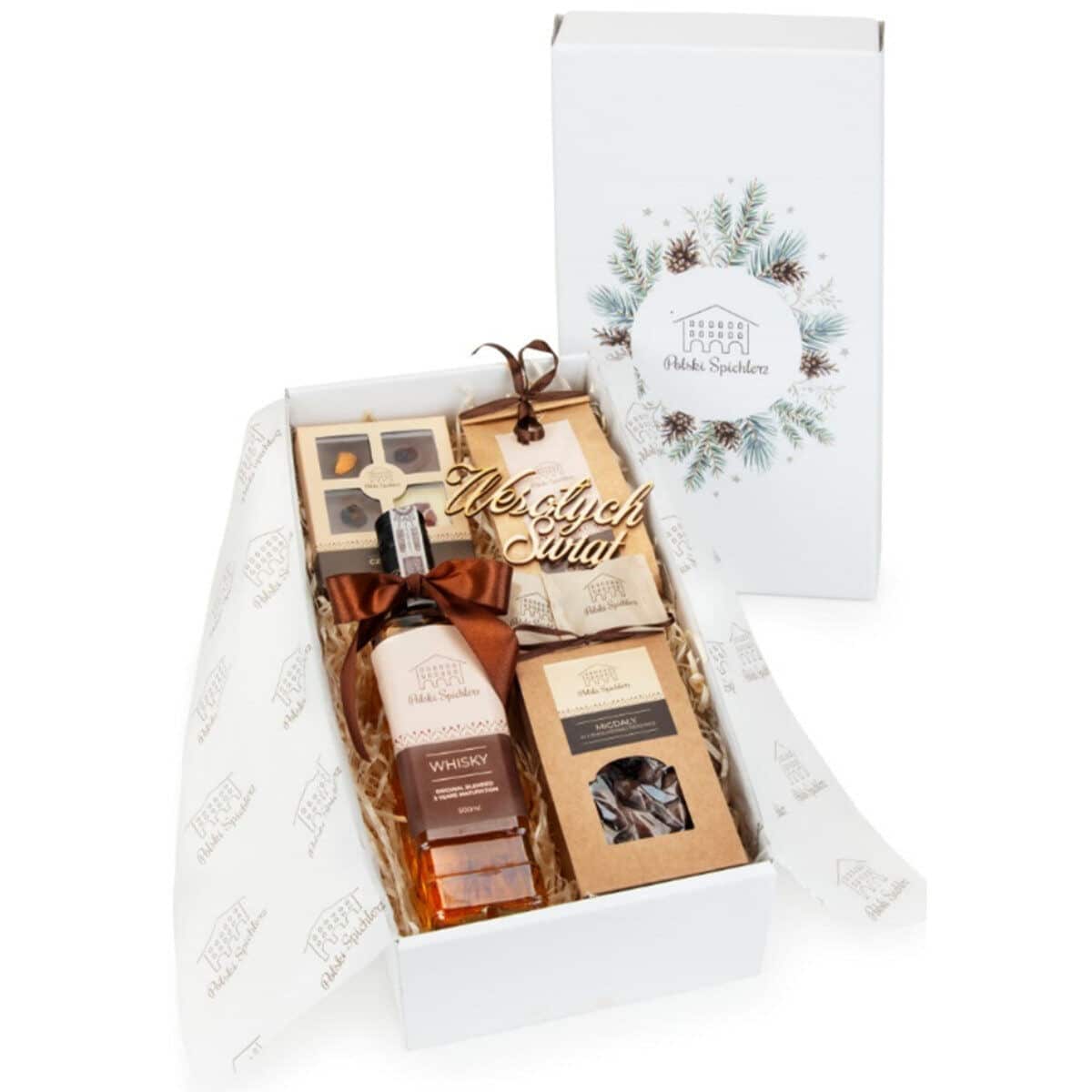 Całość w ręcznie kaszerowanym pudełku z wypełnieniem i świąteczną dekoracją.
