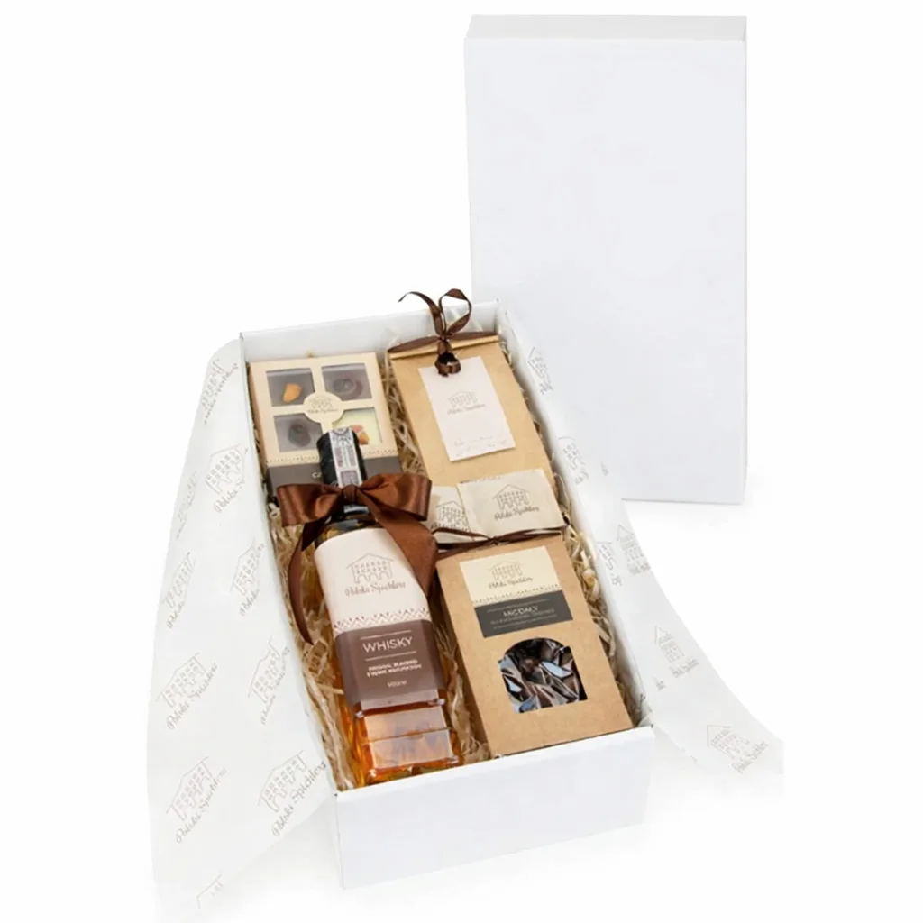Całość w ręcznie kaszerowanym pudełku z wypełnieniem, przewiązanym wstążką z logo Polski Spichlerz.